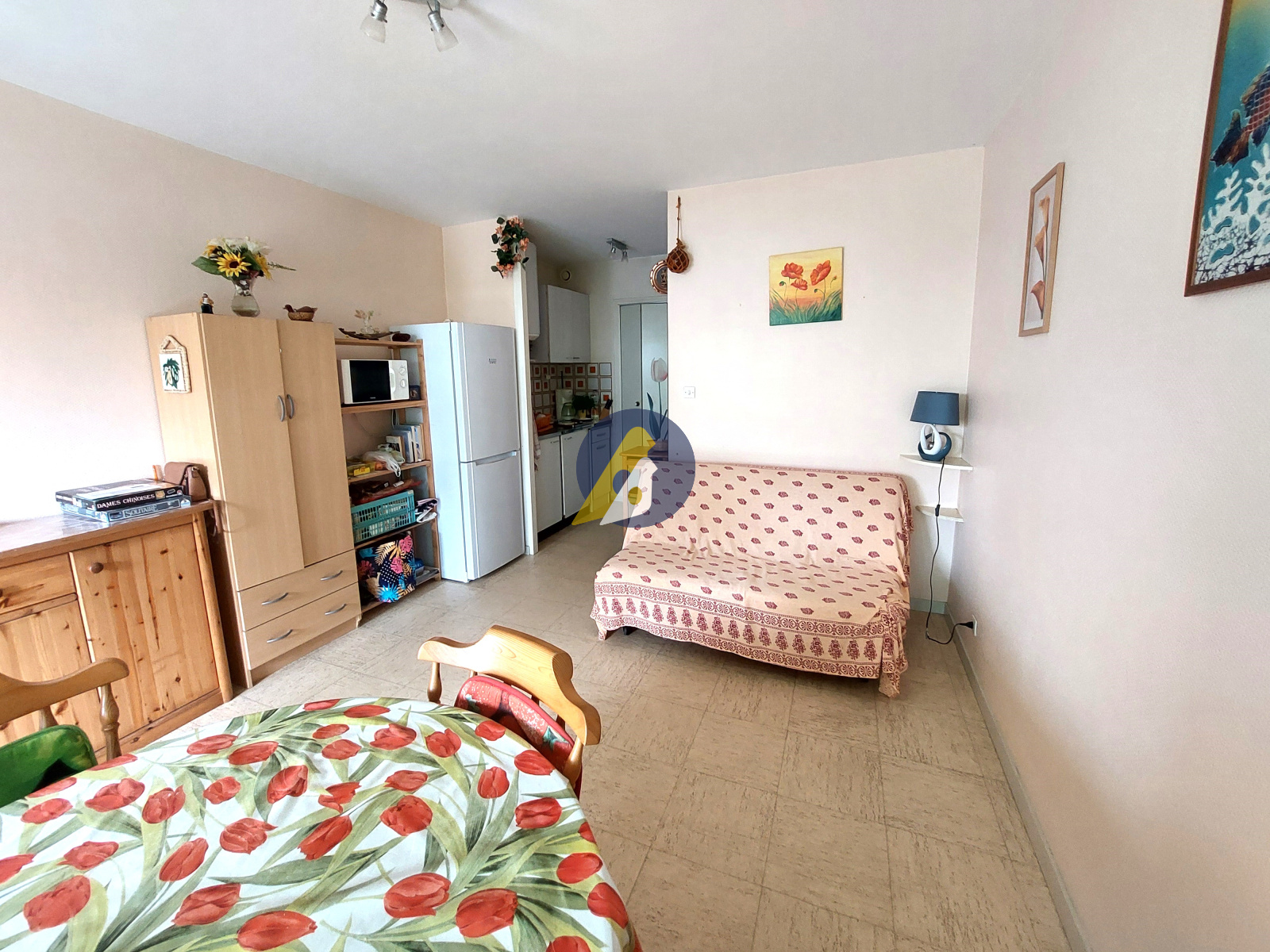 Composé d'une pièce de vie avec coin cuisine, une salle d'eau avec toilettes et une belle terrasse. Place de parking privative et cave.